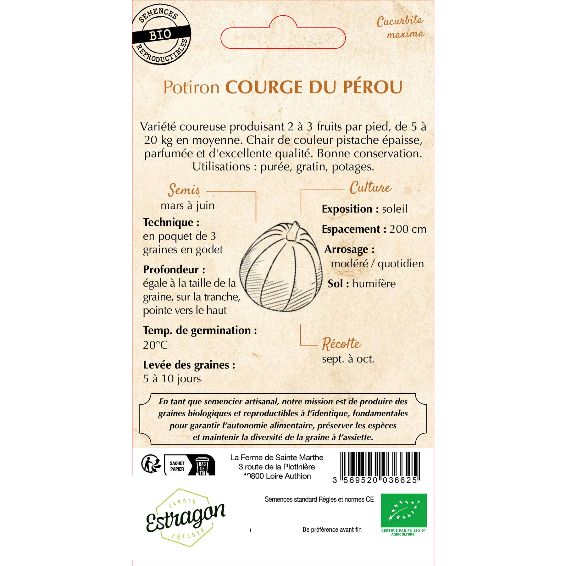 Zaden – Biologische Peruaanse Pompoen – 15 zaden – Ferme de Sainte Marthe
