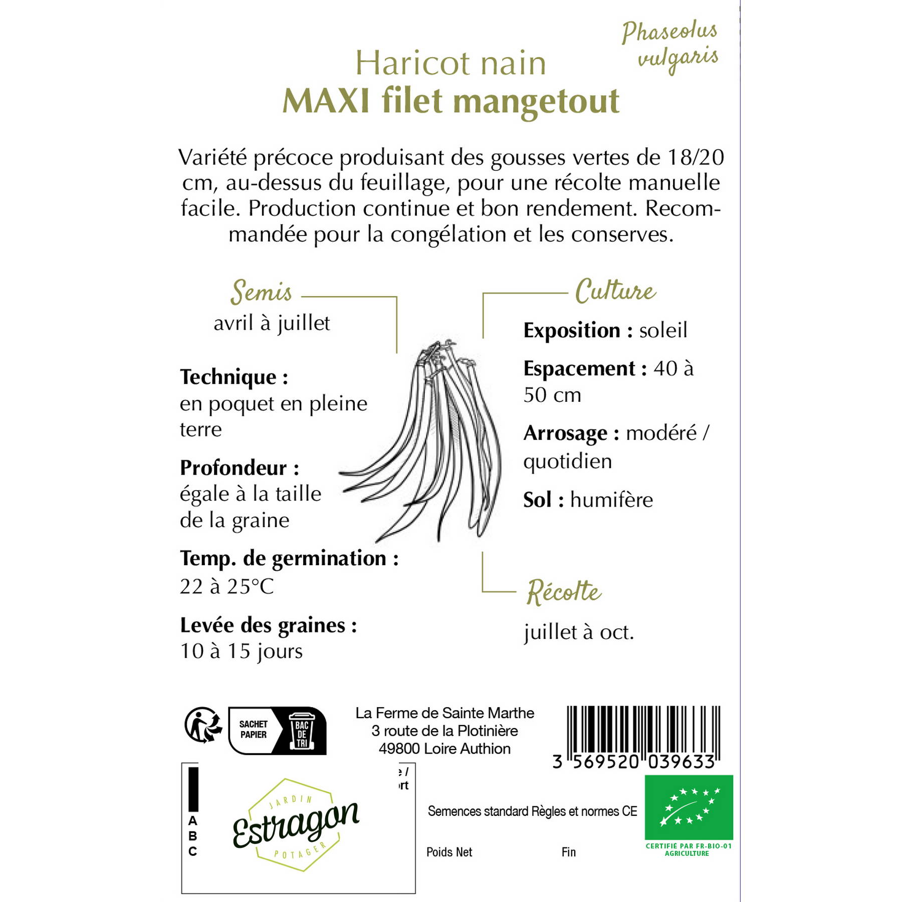 Semences – Haricot Nain Maxi filet Mangetout Bio – 180 graines – Ferme de Sainte Marthe