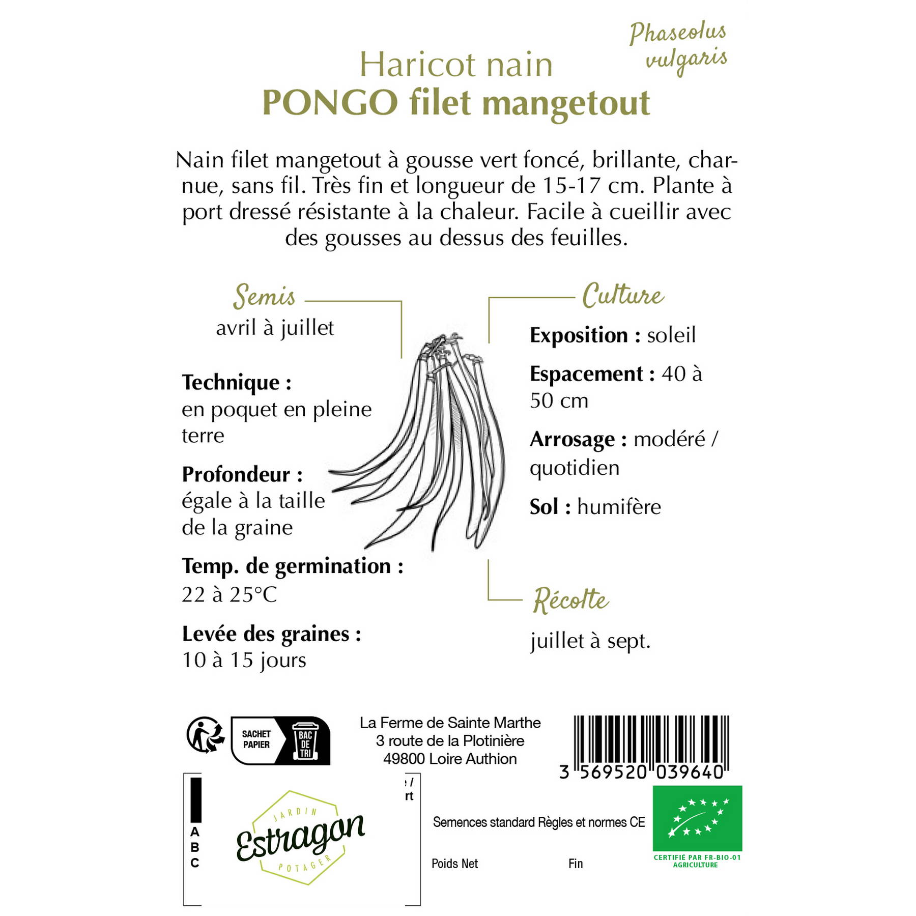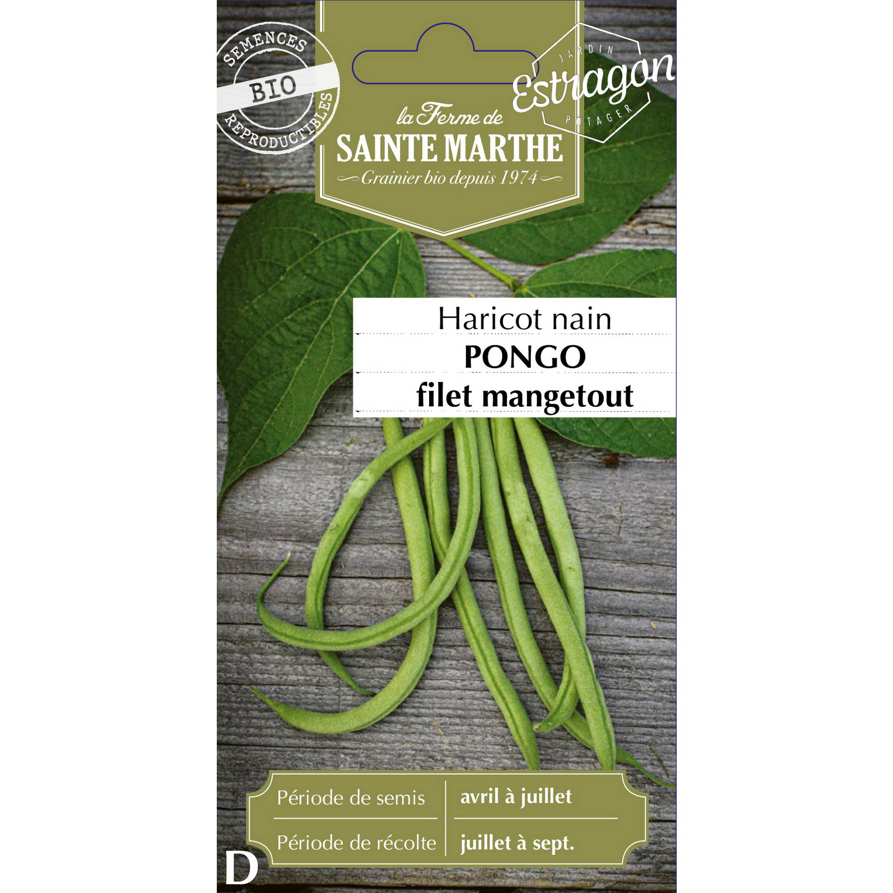 Semences – Haricot Nain Pongo Filet Mangetout Bio – 310 graines – 80 gr – Ferme de Sainte Marthe