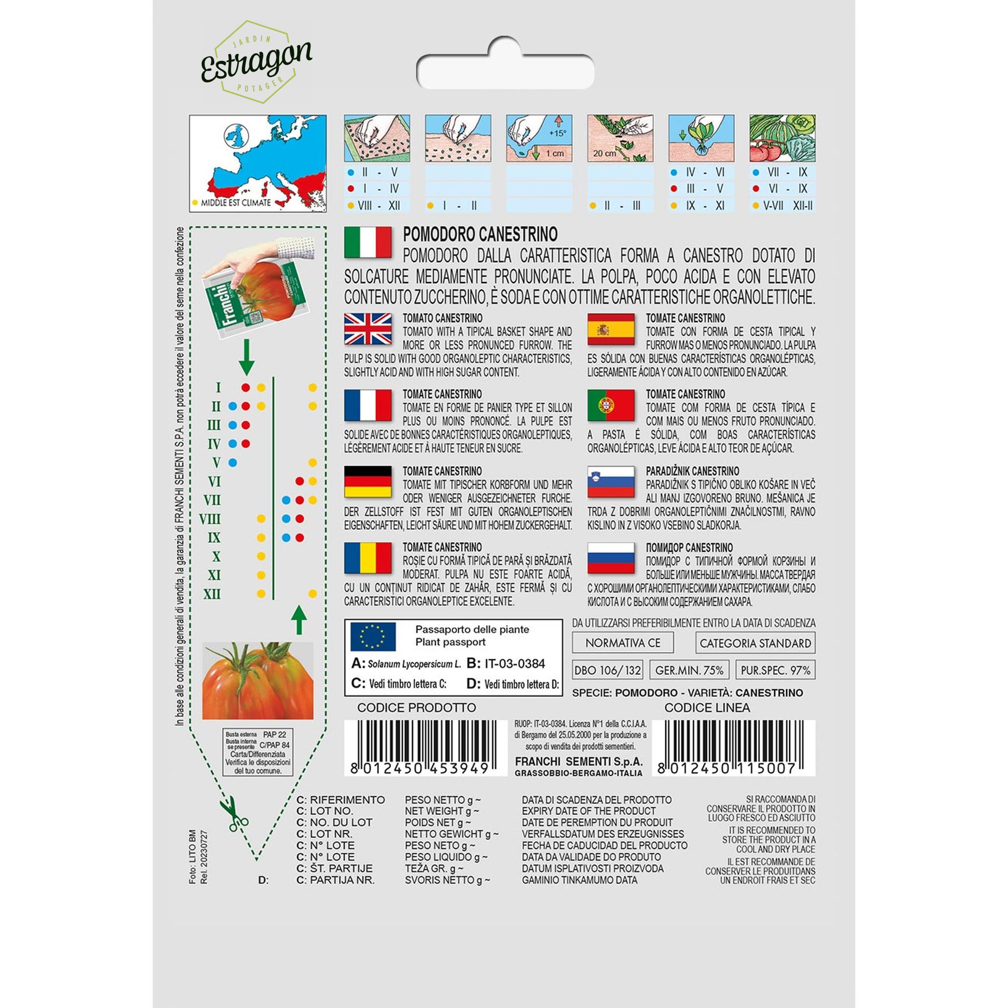 Tomate – Pomodoro Canestrino. Variété de tomate qui a une forme caractéristique de paniers avec des rainures relativement marquées. Sa pulpe est consistante avec d’excellentes caractéristiques organoleptiques. Elle est légèrement acide avec une haute teneur en sucre.